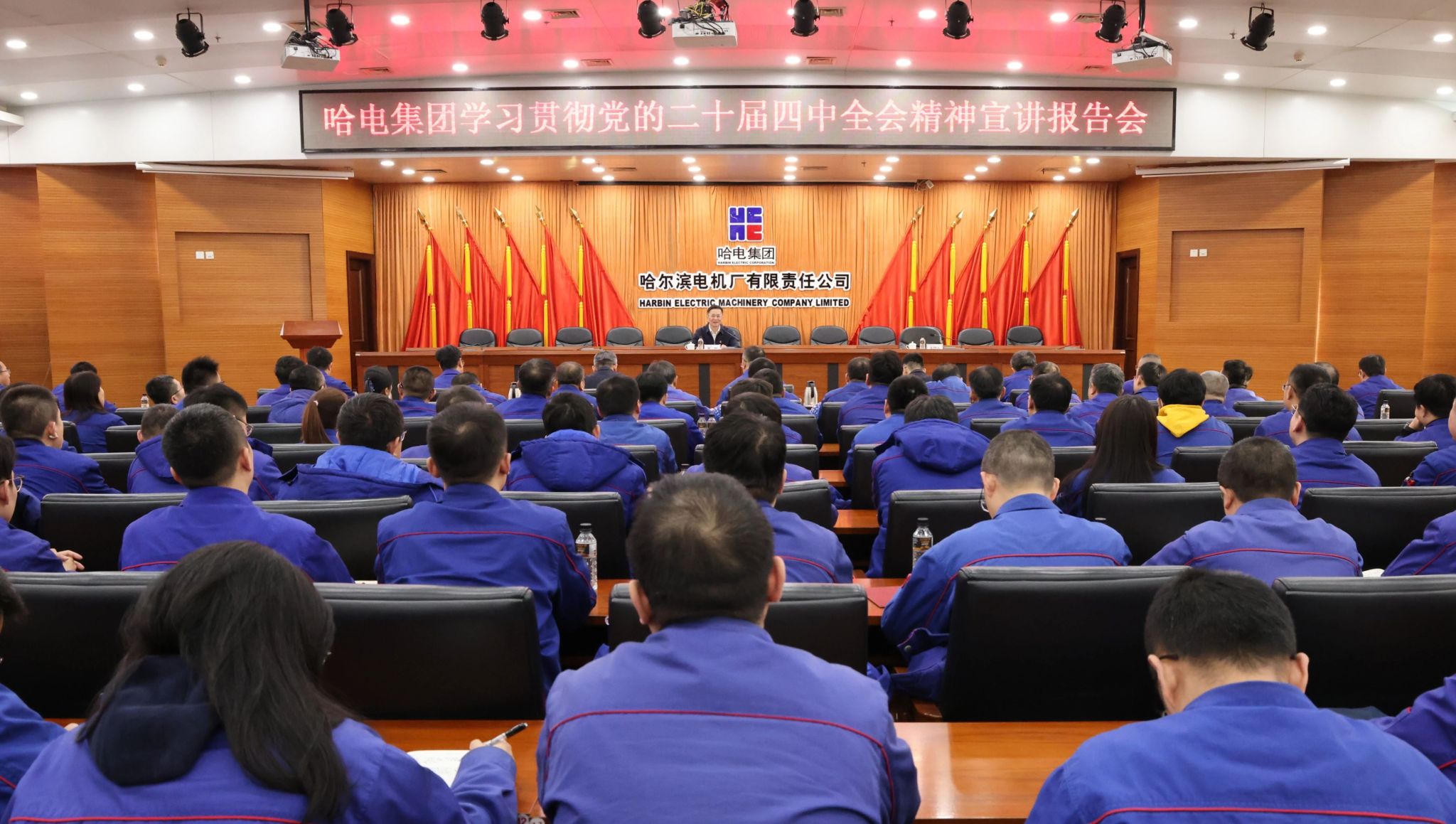 KY开元股份副总裁王贵,党委办公室、党群工作部负责同志,电机公司全体中层及以上领导人员、党员代表参加宣讲报告会。